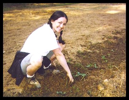 University of Georgia student planting strawberries.